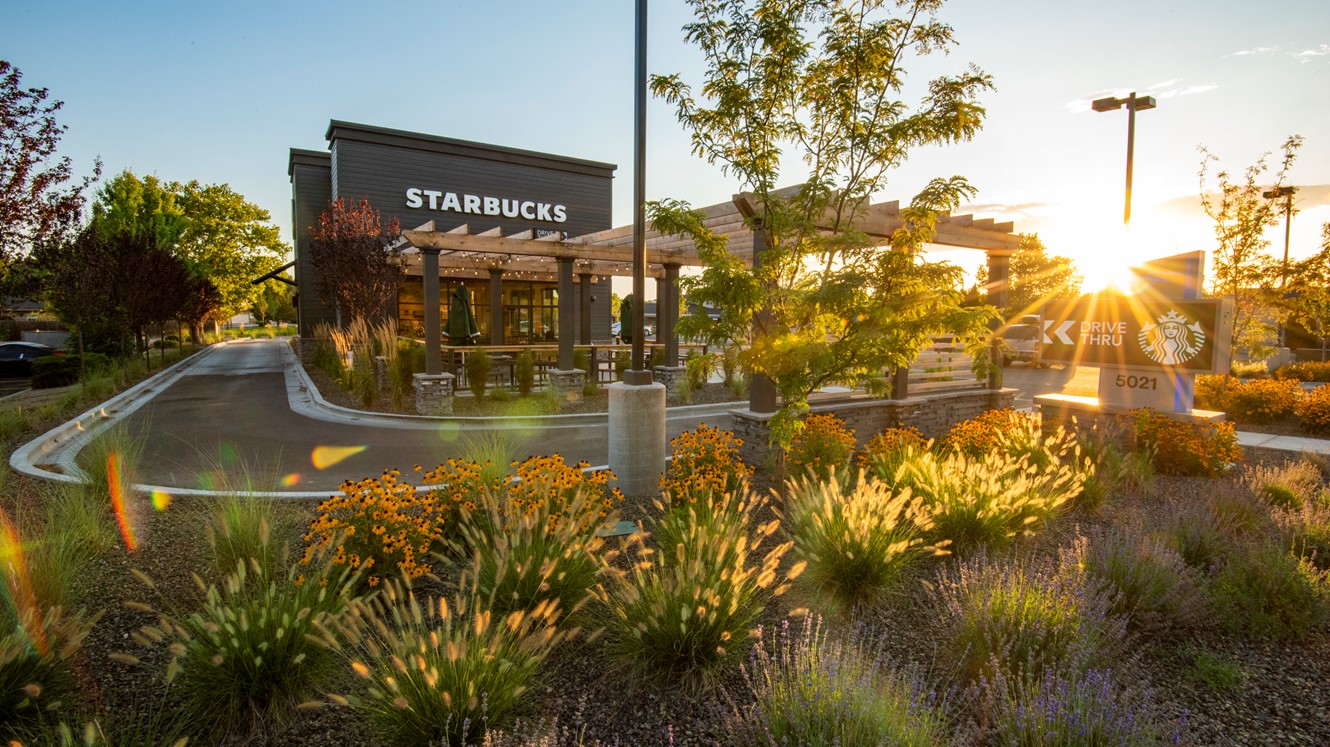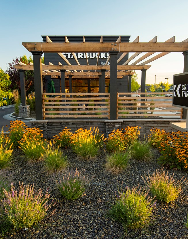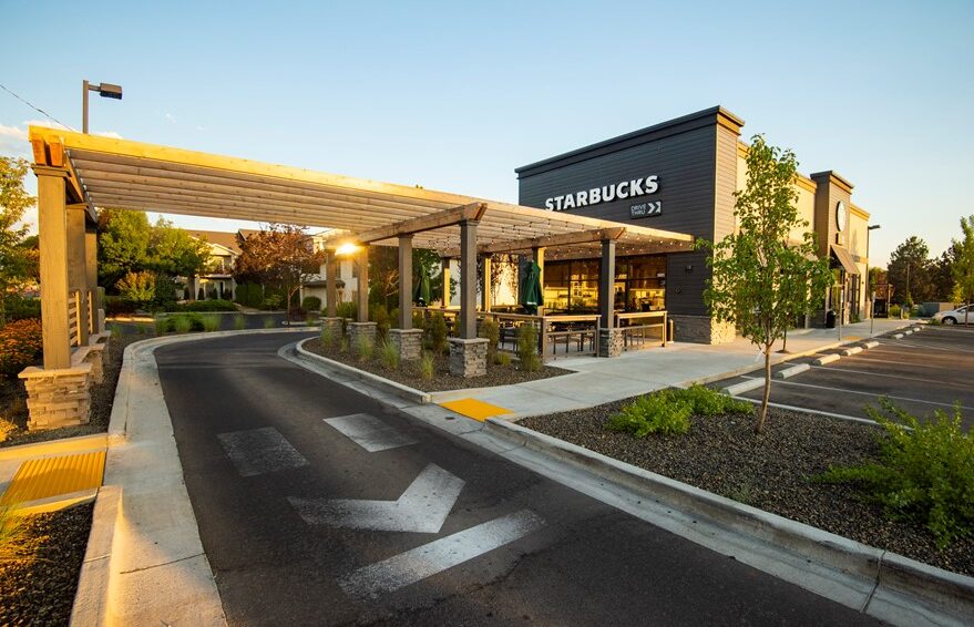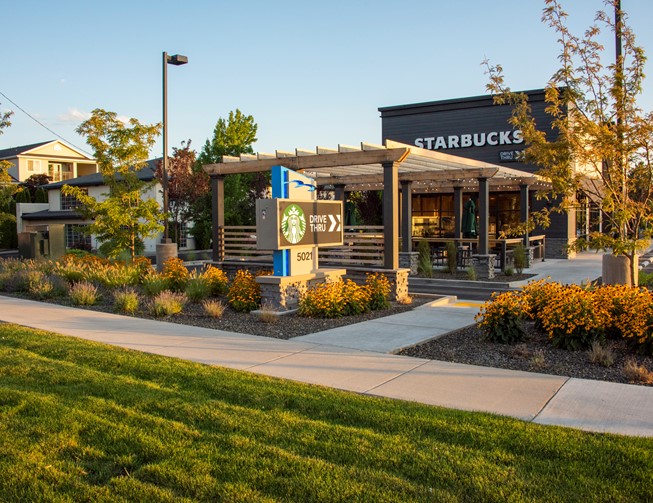 KM Engineering provided civil engineering, landscape and land surveying services for the new Starbucks on State Street in Boise. Previously a vacant parking lot, the space was re-purposed through a collaborative and multi-disciplinary effort into a trendy new development. Unique features include a drive-thru, an urban outdoor seating area with a shade pergola, and an emphasis on a modern but low water and maintenance landscape theme.